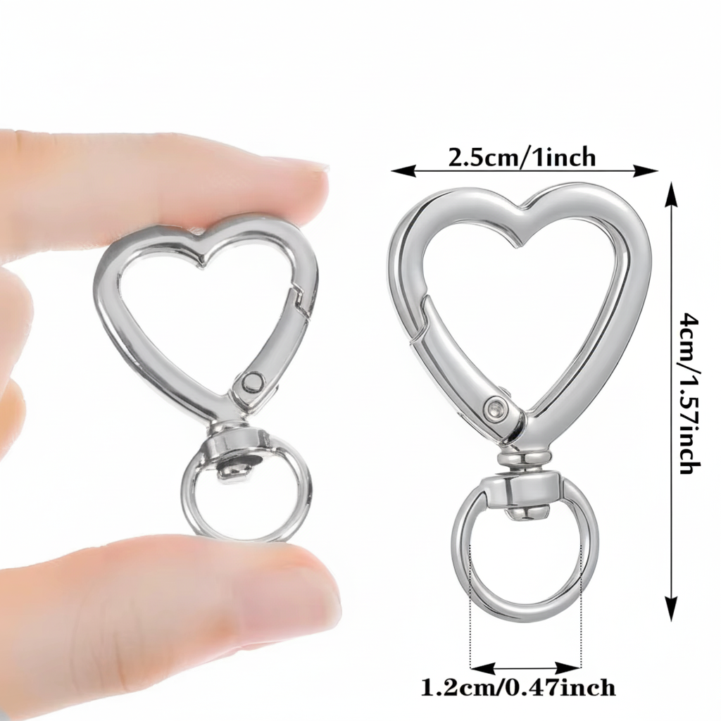Mosquetón Giratorio Plateado Forma Corazon - 50 Unid.